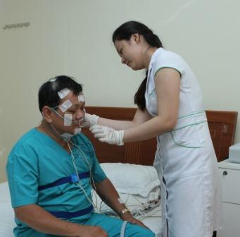 Ảnh thao tác gắn các điện cực máy đa ký giấc ngủ Alice 6 cho bệnh nhân tại Phôi Việt